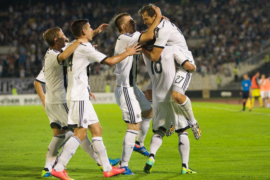 Strelci za crno-bele na premijeri u sezoni 2014/15, u prvoj utakmici drugog kola kvalifikacija za Ligu šampiona, bili su Danko Lazović u 14. i 64. minutu, odnosno Petar Škuletić u 71. minutu.
